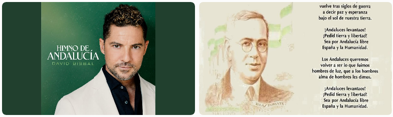 El Himno de Andalucía, oficial desde 1982 por la Ley 3/1982, tiene letra de Blas Infante (escrita en 1933) y música basada en el canto popular “Santo Dios”, adaptada por José del Castillo Díaz. Es un llamado a la movilización: “¡Andaluces, levantaos! / Pedid tierra y libertad”. Su estreno público fue en 1936, y hoy suena en todos los actos oficiales, desde izados de bandera hasta conciertos multitudinarios.
